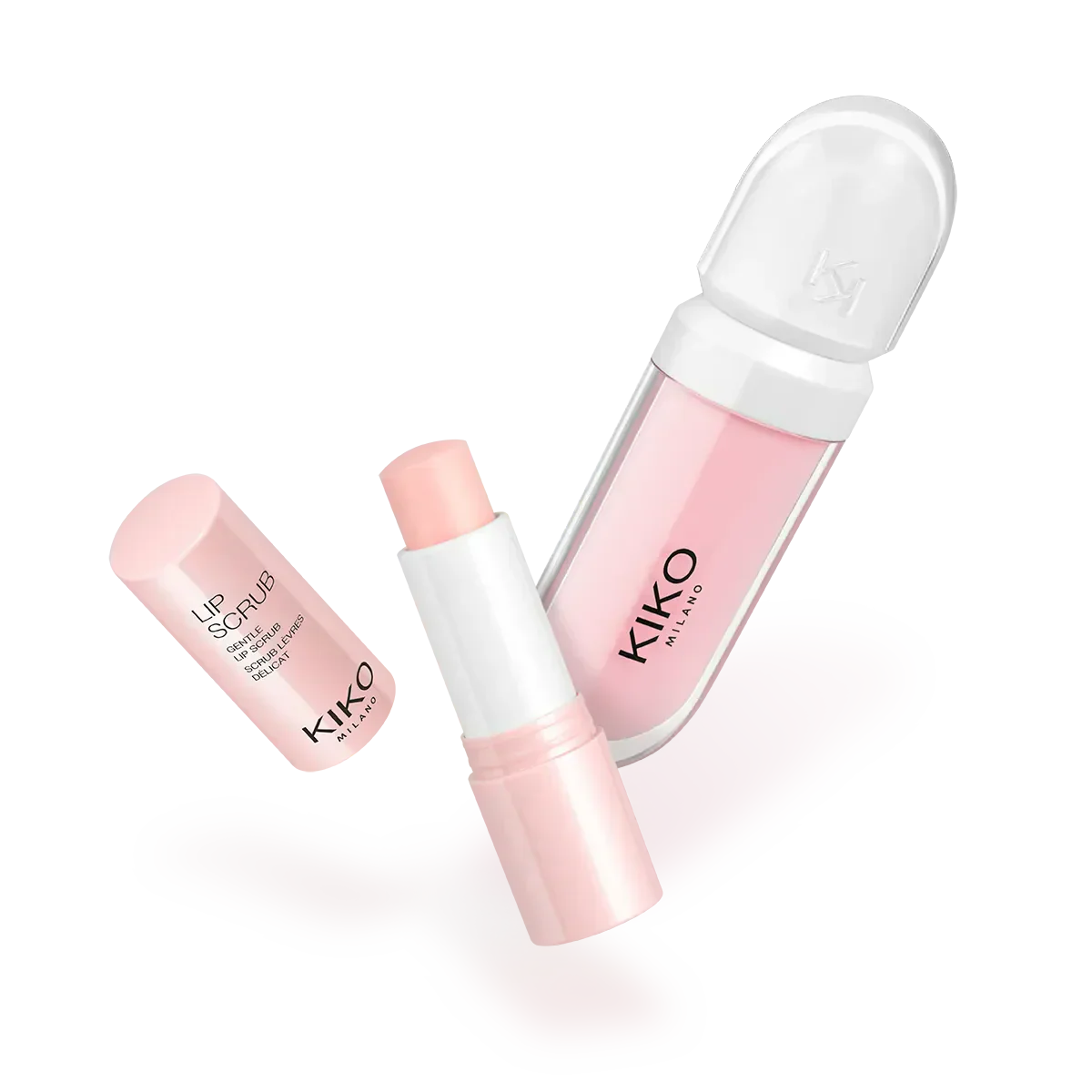 Conjunto de skincare composto por 1 esfoliante labial e 1 creme aperfeiçoador para os lábios com efeito volumizador.
