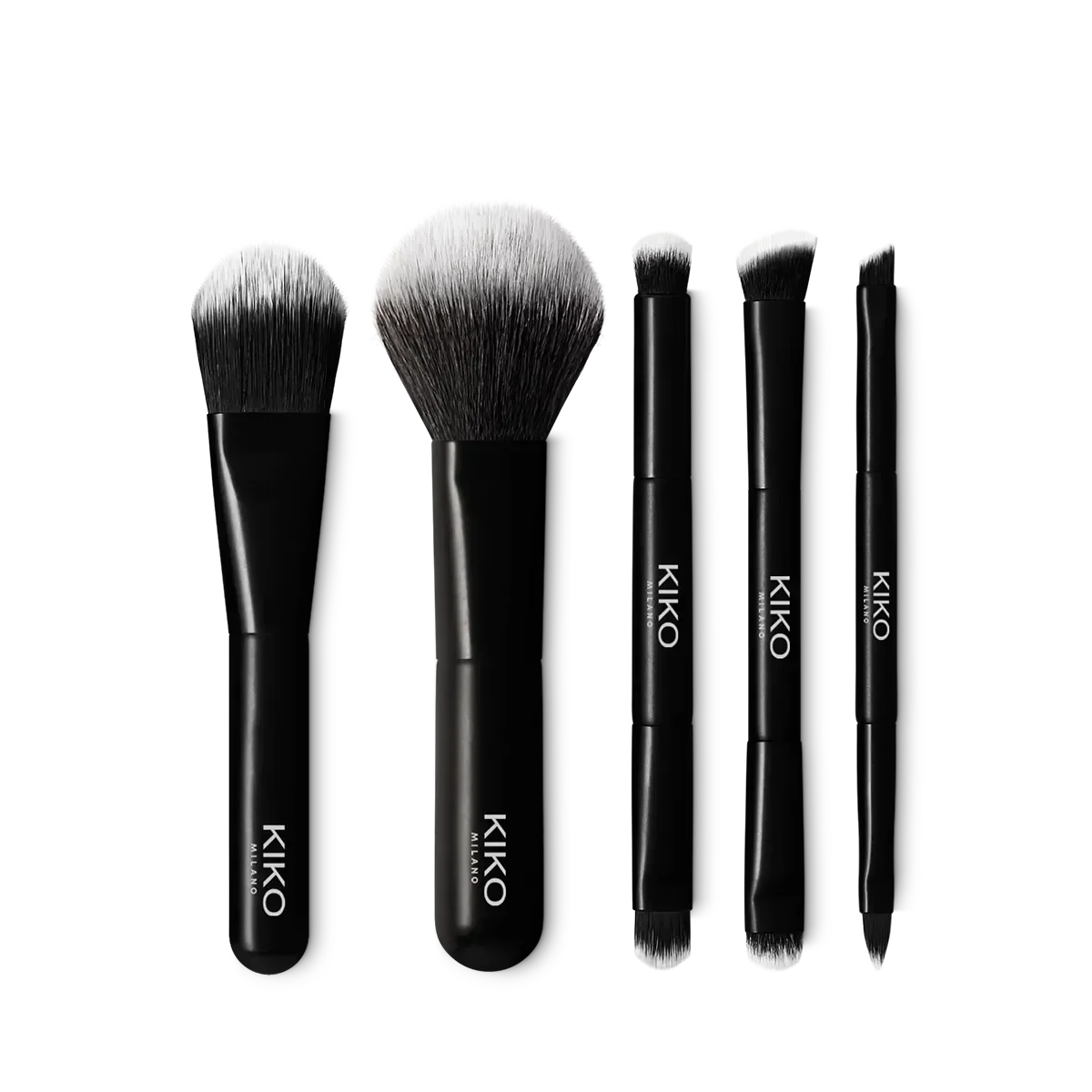 Pincel duo com um ponta plana que permite aplicar de forma precisa e controlada os diferentes tipos de sombras e corretores, e outra arredondada para aplicar e esbater facilmente os produtos.